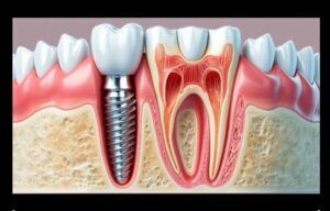 3. Crown Placement A custom-made crown is placed on top of the abutment, completing the restoration.